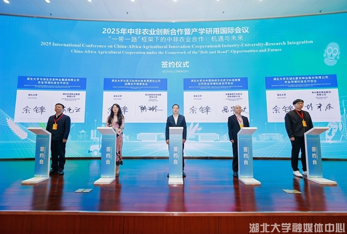 At the conference, a joint signing ceremony for domestic agricultural enterprise innovation was also held. Hubei State Farms Seed Group Co., Ltd., Hubei Kangnong Seed Co., Ltd., Wuhan Yunzhen Technology Co., Ltd., and Zhongken Jinxiu Huanong Co., Ltd. signed an agreement with the Modern Agricultural Innovation Research Institute of Hubei University to jointly build the “Yangtze River Economic Belt Biobreeding Innovation Consortium”. By leveraging the strengths of Hubei University’s first-class discipline of biology and its technological strengths in bio-manufacturing, the consortium will advance the industrialization of molecular design breeding and high-yield green crop varieties. The simultaneous implementation of the two agreements marks that the China-Africa and university-enterprise “dual-wheel drive” cooperation has entered a new stage of substantive operation, injecting new momentum into the high-quality development of agriculture under the Belt and Road Initiative.
