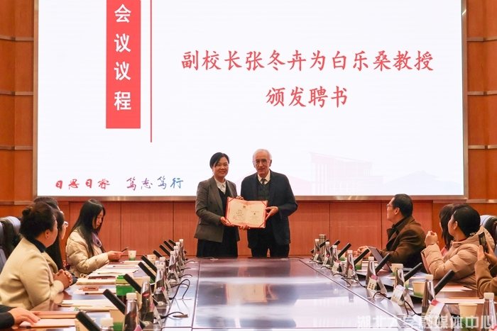 Professor Joël BELLASSEN, a renowned French Sinologist, was officially appointed as a Visiting Professor at Hubei university on December 4. Zhang Donghui, Member of the University Party Committee Standing Committee and Vice President, attended the Appointment Ceremony and presented Professor Bellassen with the Letter of Appointment. Representatives from the Publicity Department of the University Party Committee, the Department of Human Resources, the Office of International Exchange and Cooperation, the College of Liberal Arts, and faculty and students participated in the event.