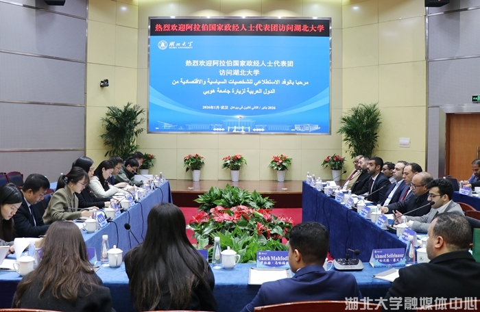 On January 24, a 21-member delegation of Arab political and economic representatives visited to Hubei University. Chen Hanhua, Deputy Director of the Foreign Affairs Office of Hubei Provincial People's Government, Zhang Donghui, a member of the Standing Committee of the CPC Hubei University Committee and Vice President of Hubei University, as well as the person in charge of relevant departments and representatives of faculty and students attended the event.